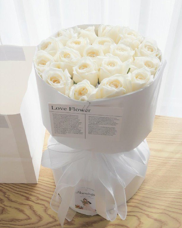 A stunning bouquet of 20 pristine white roses, symbolizing purity, elegance, and timeless love.